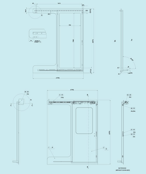 sight are polished according ‘Mirror 8’. Galvanic corrosion protection is achieved by using TEF-Gel, Sika ex 291, Lexan insulation sheets and synthetic inserts wherever applicable. The door is designed in Solid Works 3D software and strength calculations are carried out with Cosmos Works. Door, frame, integrated guiding system, operating parts and cover plate are fully assembled, adjusted and tested in the factory. The door will be delivered within the frame and ready for welding into the ship’s structure. The door can be delivered with certificates of all