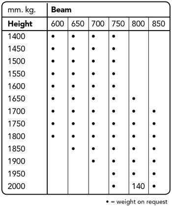 Standard dimensions: Opening height 2000 mm. Opening width 800 mm (Other dimensions on request).